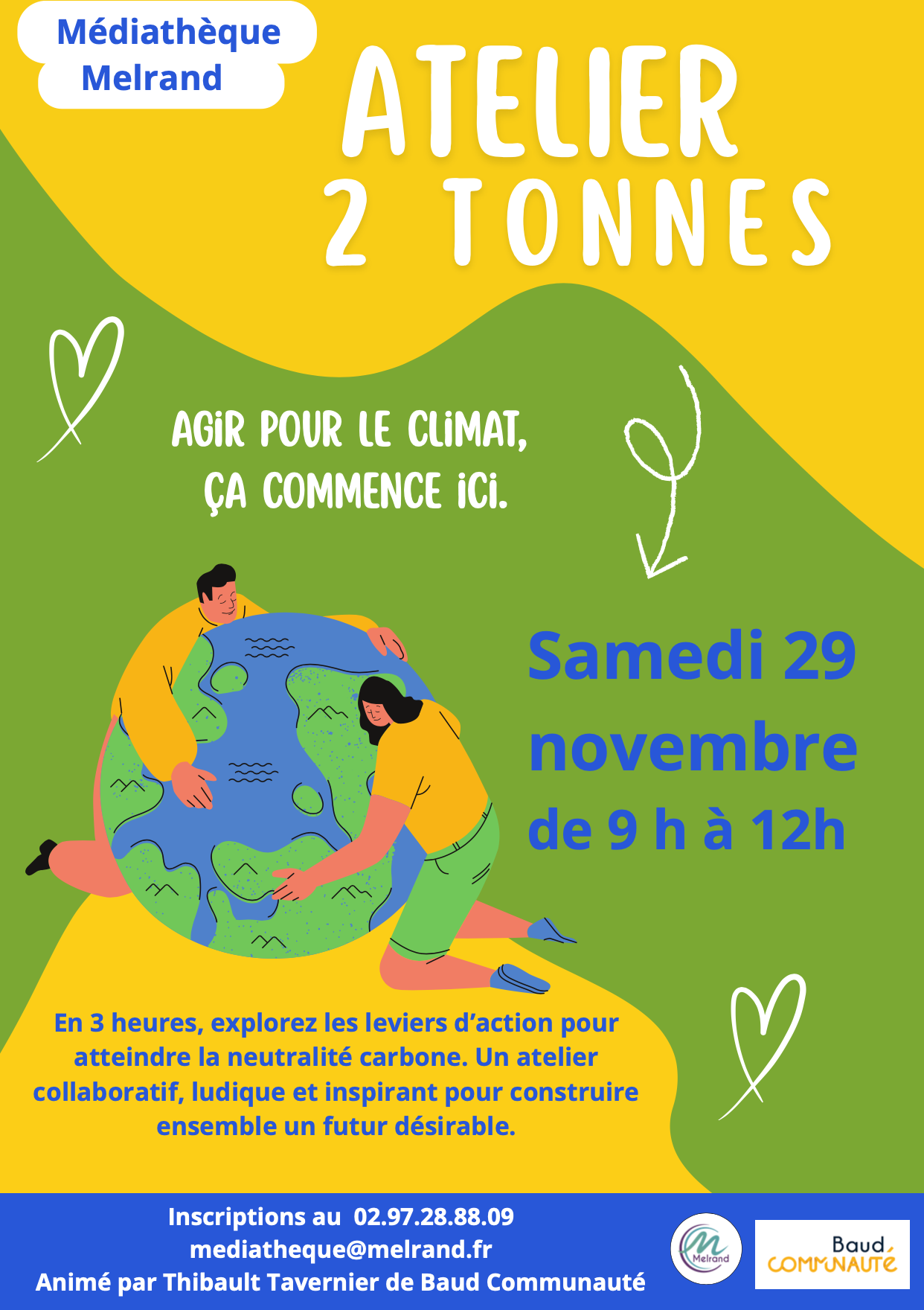 Accueil > Événements > Atelier 2 tonnes Atelier 2 tonnes Le 29 Nov 2025 9h à 12h Médiathèque de Melrand Partagez cette page sur