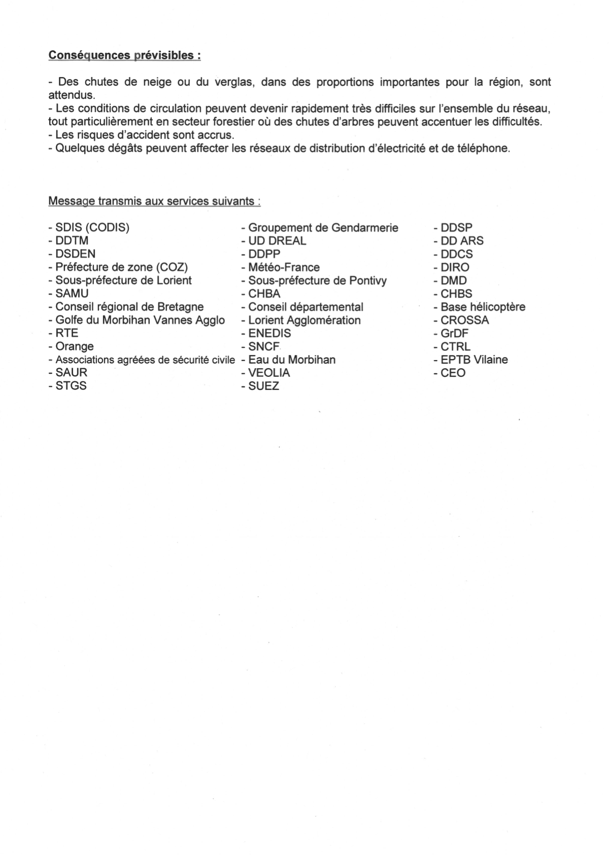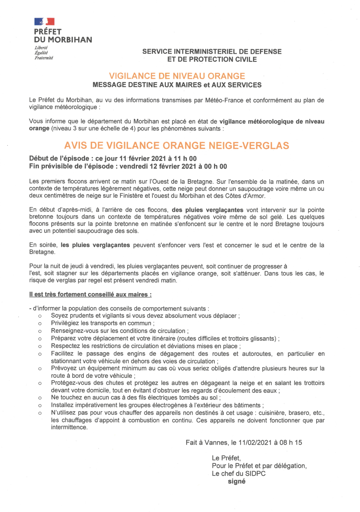 Accueil > Actualités > Message d’alerte de la préfecture du Morbihan Message d’alerte de la préfecture du Morbihan ActualitésPublié le 11 février 2021 Partagez cette page sur Découvrez nos autres actualités Publié le 3 novembre 2025Actualités Retour sur la soirée d’Halloween organisée à Melrand La soirée Halloween organisée par la commission jeunesse et quelques enfants du CME (conseil municipal des enfants) a été un […] En savoir plus Publié le 31 octobre 2025Actualités CÉRÉMONIE DU 11 NOVEMBRE – 2025 Commémoration de l’Armistice du 11 novembre 1918 11 h 00, rendez-vous devant la mairie. 11 h 15, départ du défilé. […] En savoir plus Publié le 30 octobre 2025Actualités Enedis vous informe d’une coupure d’électricité programmée le 27/11/2025 sur la commune de MELRAND Afin d’améliorer la qualité de la distribution électrique, Enedis réalisera des travaux sur le réseau de distribution.Ces interventions entraîneront une […] En savoir plus Publié le 19 octobre 2025Actualités Départ à la retraite Le vendredi 26 septembre 2025, dans la salle du conseil, une cérémonie chaleureuse a réuni le maire, Charles Boulouard, les […] En savoir plus Publié le 12 octobre 2025Actualités VISITE AU SÉNAT Partis très tôt en tgv, le mercredi 1er octobre 2025, 8 jeunes élus du conseil municipal des enfants de Melrand, […] En savoir plus Publié le 12 octobre 2025Actualités Opération broyage en Octobre 2025 En savoir plus Publié le 12 octobre 2025Actualités Ateliers & Conférences à la médiathèque Le 1er mercredi des vacances, soit le 22 octobre, de 14h00 à 16h30, un Atelier Nature « Arbres, forêt et vie » […] En savoir plus Publié le 6 octobre 2025Actualités Réunion publique du PPRI du bassin versant du Blavet En savoir plus Toutes nos actualités
