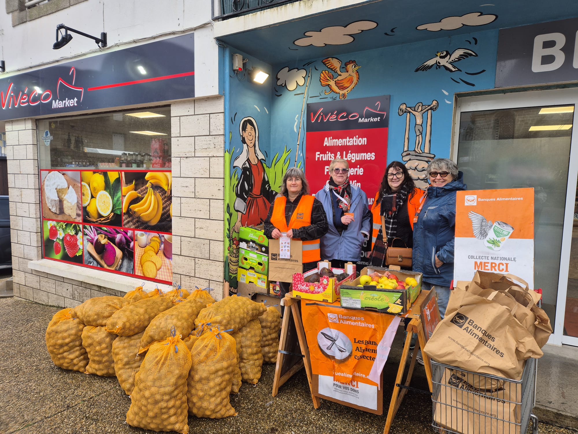 Installée à l’entrée du magasin, la Banque Alimentaire a pu récolter 703,280 kg de denrées alimentaires, dont 630 kg de pommes de terre offerts par M. Le Thuaut. Grâce à la générosité des habitants et à l’engagement des personnes présentes sur le terrain, cette opération est une véritable réussite.