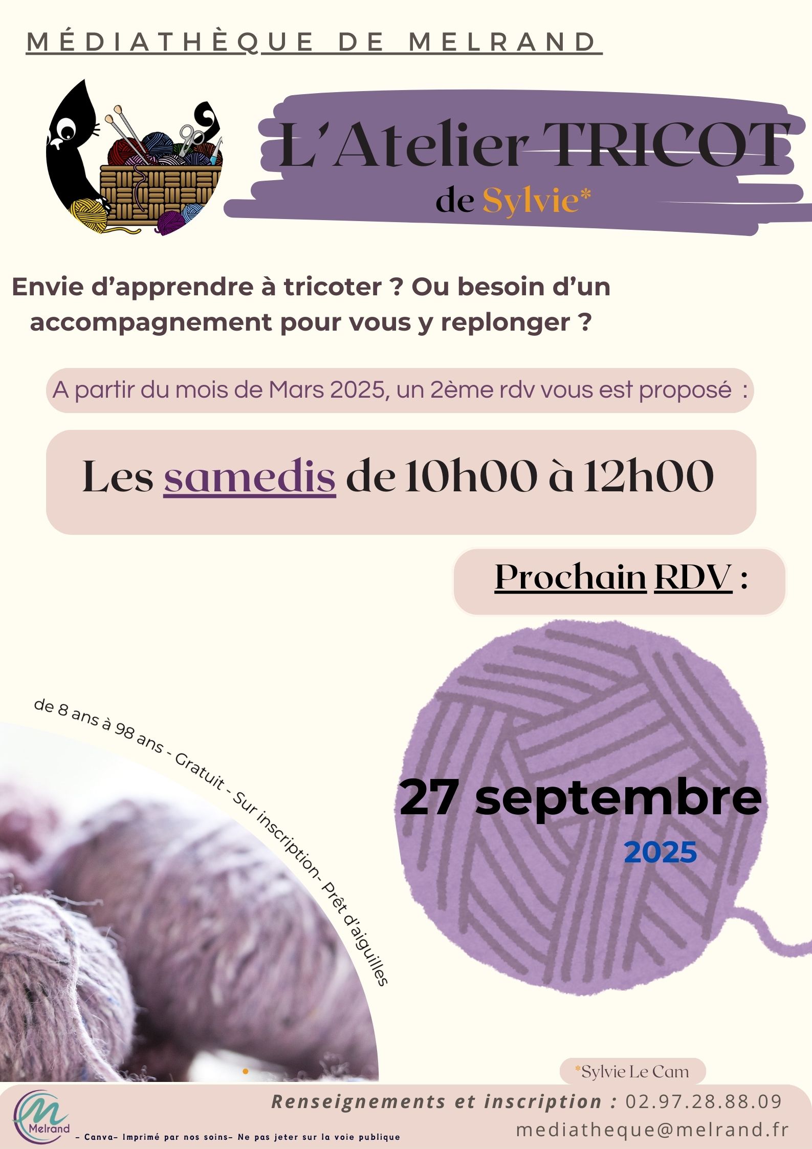 – Prochain « Atelier Tricot » débutant.e.s ou ancien.ne.s pratiquant.e.s proposé par Sylvie LE CAM