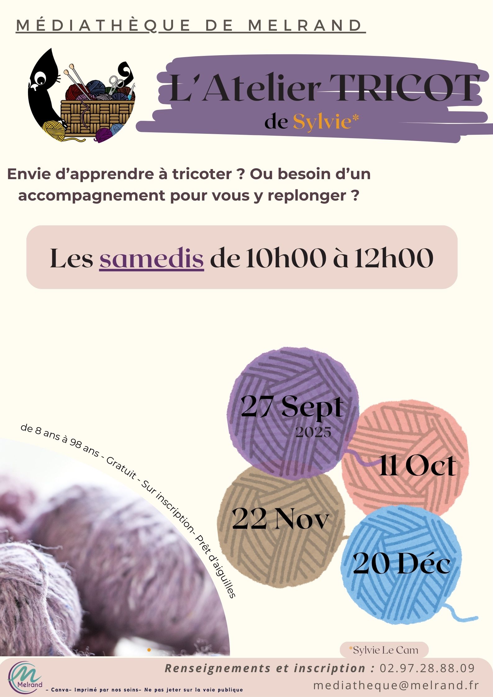 Calendrier des prochains « Ateliers Tricot » du samedi (sept à Déc 2025) – GRATUIT