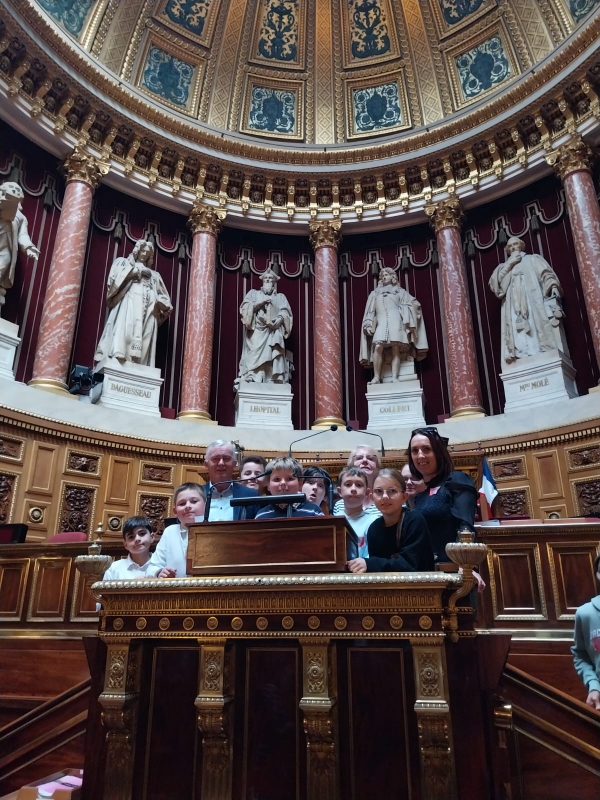Partis très tôt en tgv, le mercredi 1er octobre 2025, 8 jeunes élus du conseil municipal des enfants de Melrand, accompagnés par le maire, Charles Boulouard, Margot Roger, adjointe aux affaires scolaires, Hélène Tanguy, conseillère municipale et Delphine, une maman, se sont déplacés à Paris pour visiter le Sénat.